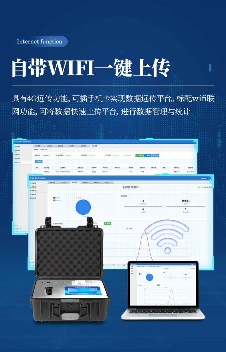 11、儀器具有4G遠(yuǎn)傳功能,可插手機(jī)卡實現(xiàn)數(shù)據(jù)遠(yuǎn)傳平臺。標(biāo)配wifi聯(lián)網(wǎng)功能,可將數(shù)據(jù)快速上傳平臺,進(jìn)行數(shù)據(jù)管理與統(tǒng)計。