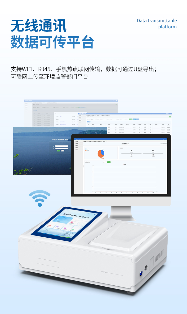 云平臺(tái):儀器帶有監(jiān)管平臺(tái),連接有線/無線網(wǎng)絡(luò),檢測(cè)結(jié)果直接傳輸至環(huán)境安全監(jiān)管平臺(tái);