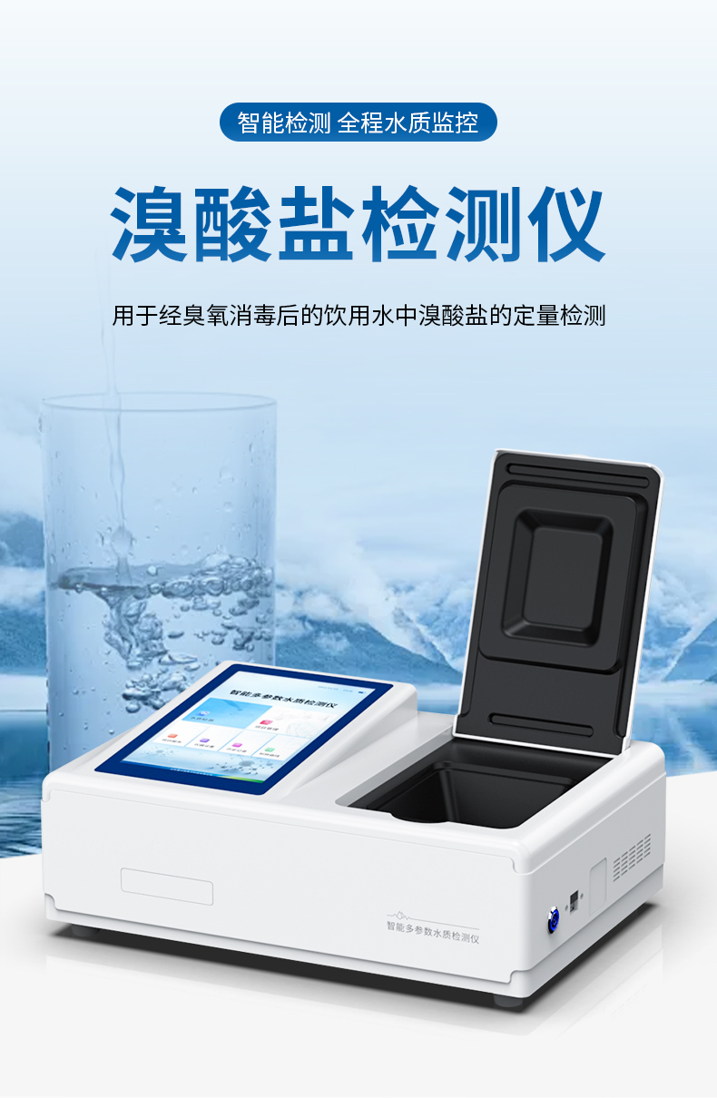 水質(zhì)溴酸鹽快速檢測(cè)儀是一款檢測(cè)快速檢測(cè)水體中溴酸鹽含量的儀器,適用于經(jīng)臭氧消毒后的礦泉水、凈化水、純凈水和各種包裝飲用水中溴酸鹽的定量檢測(cè)。