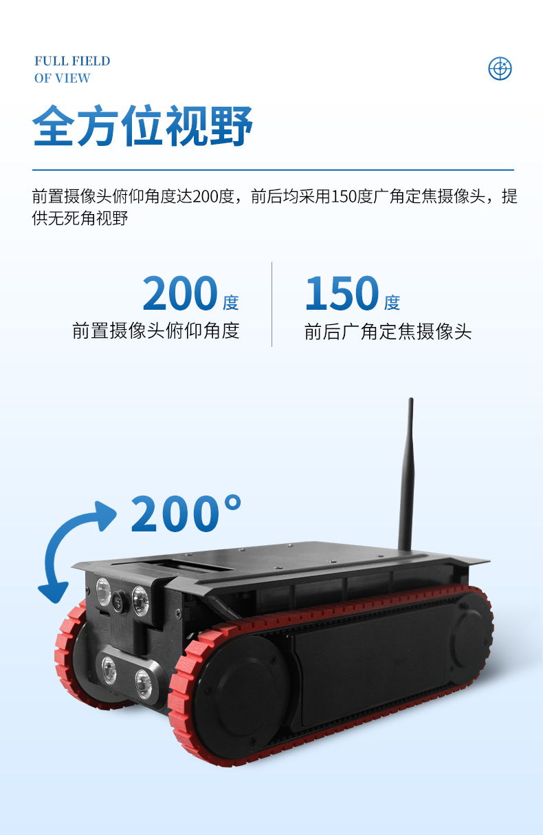 全方位視野:前置攝像頭俯仰角度達200度,前后均采用150度廣角定焦攝像頭,提供無死角視野。