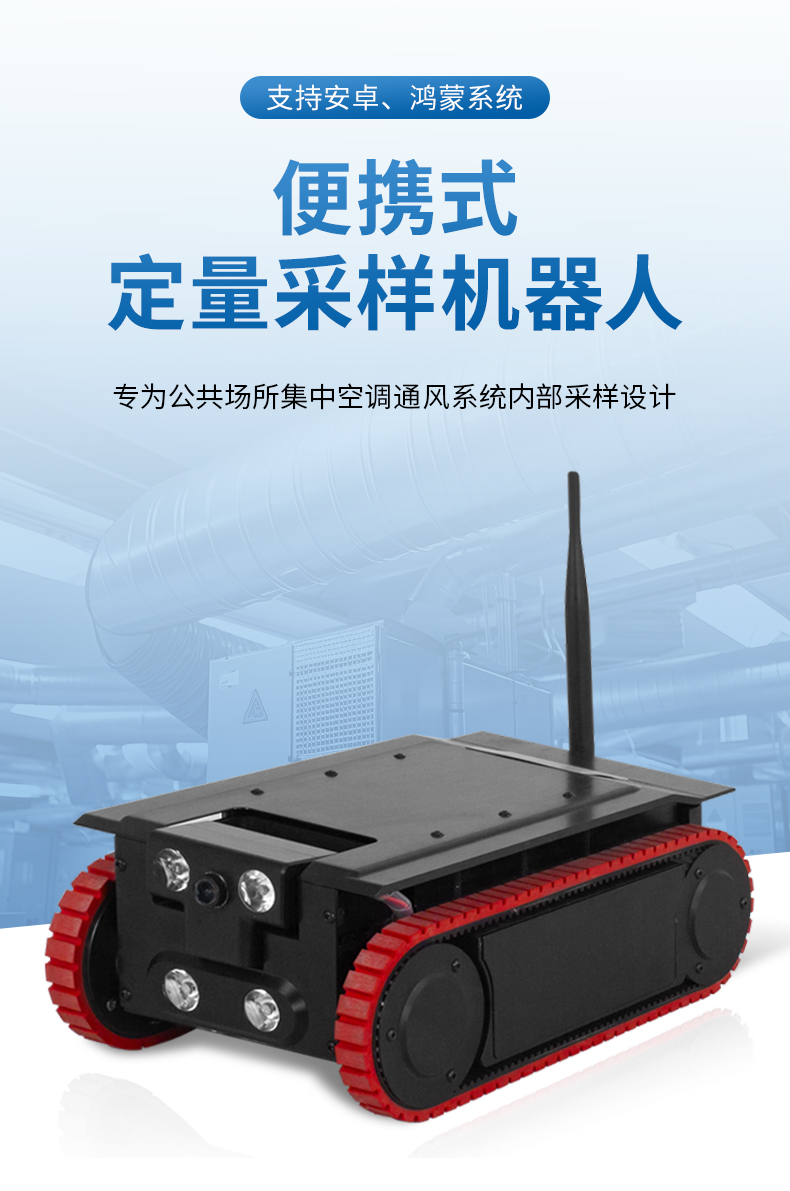 定量采樣機器人是一款專為公共場所集中空調通風系統內部采樣設計的高精度、便攜式智能設備。該產品嚴格按照《WS 10013-2023公共場所集中空調通風系統衛生規范》、《WS/T 10004-2023公共場所集中空調通風系統衛生學評價規范》以及《GB 37488-2019公共場所衛生指標及限值要求》中的相關標準進行設計與制造,確保了其在各種工業環境下的穩定性和可靠性。它采用了先進的航空鋁合金材料,結合了高效的移動性能與卓越的采樣技術,能夠滿足多種行業的通風管道檢測和維護工作需求。