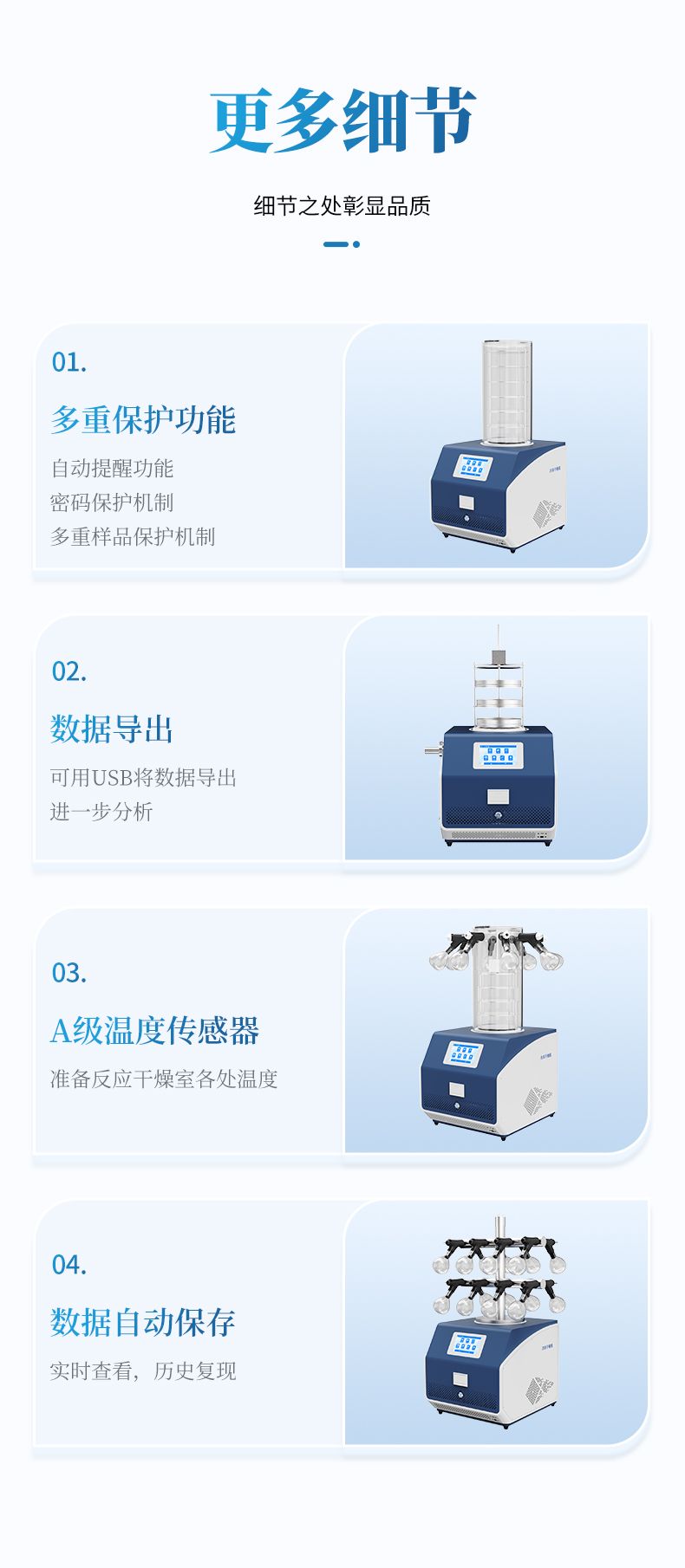 (6) 多重樣品保護(hù)機(jī)制,如冷阱溫度過高時(shí),禁止真空泵啟動,避免樣品沸騰而被破壞。
