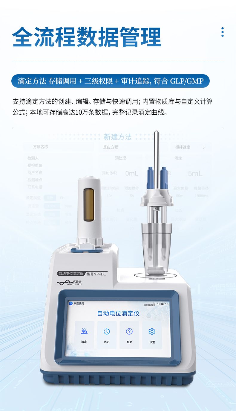 4、支持動態滴定、等量滴定、手動滴定的滴定方式,可預設滴定終點或自動識別終點滴定,方便用戶根據樣品特性選擇最佳滴定工作流程;