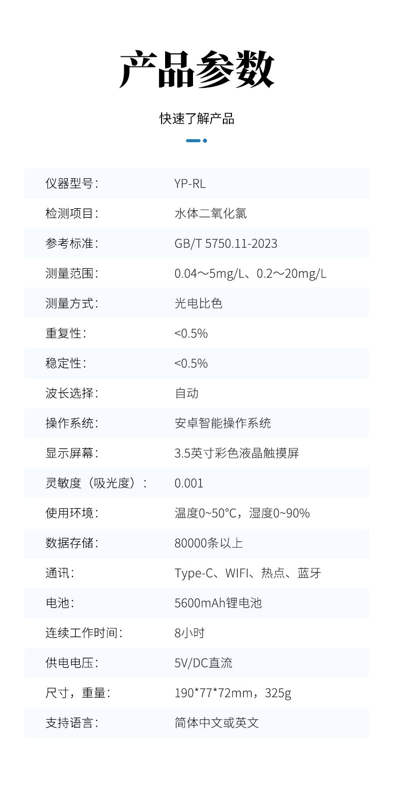 ⑥便攜式體積小,重量輕,方便戶外檢測;
