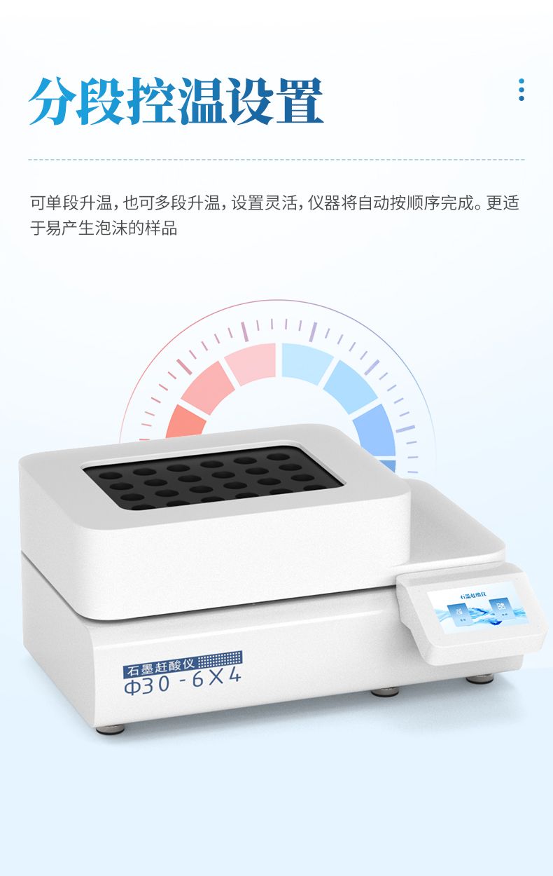 分段控溫設(shè)置,即可單段升溫,也可多段升溫,設(shè)置靈活,儀器將自動(dòng)按順序完成。更適于易產(chǎn)生泡沫的樣品。