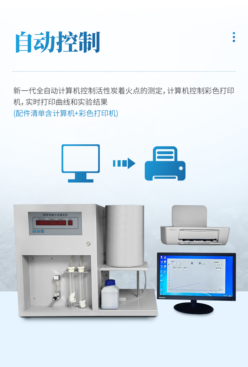 工作方法是計算機自動控制和描述顆粒活性炭于流動空氣中的參考著火點的測定。計算機自動準確地獲得著火點,將升溫過程的時間與溫度曲線和結(jié)果直觀的顯示出并通過彩色打印機打印出曲線和實驗結(jié)果,本機可無上限保存所有實驗數(shù)據(jù)。