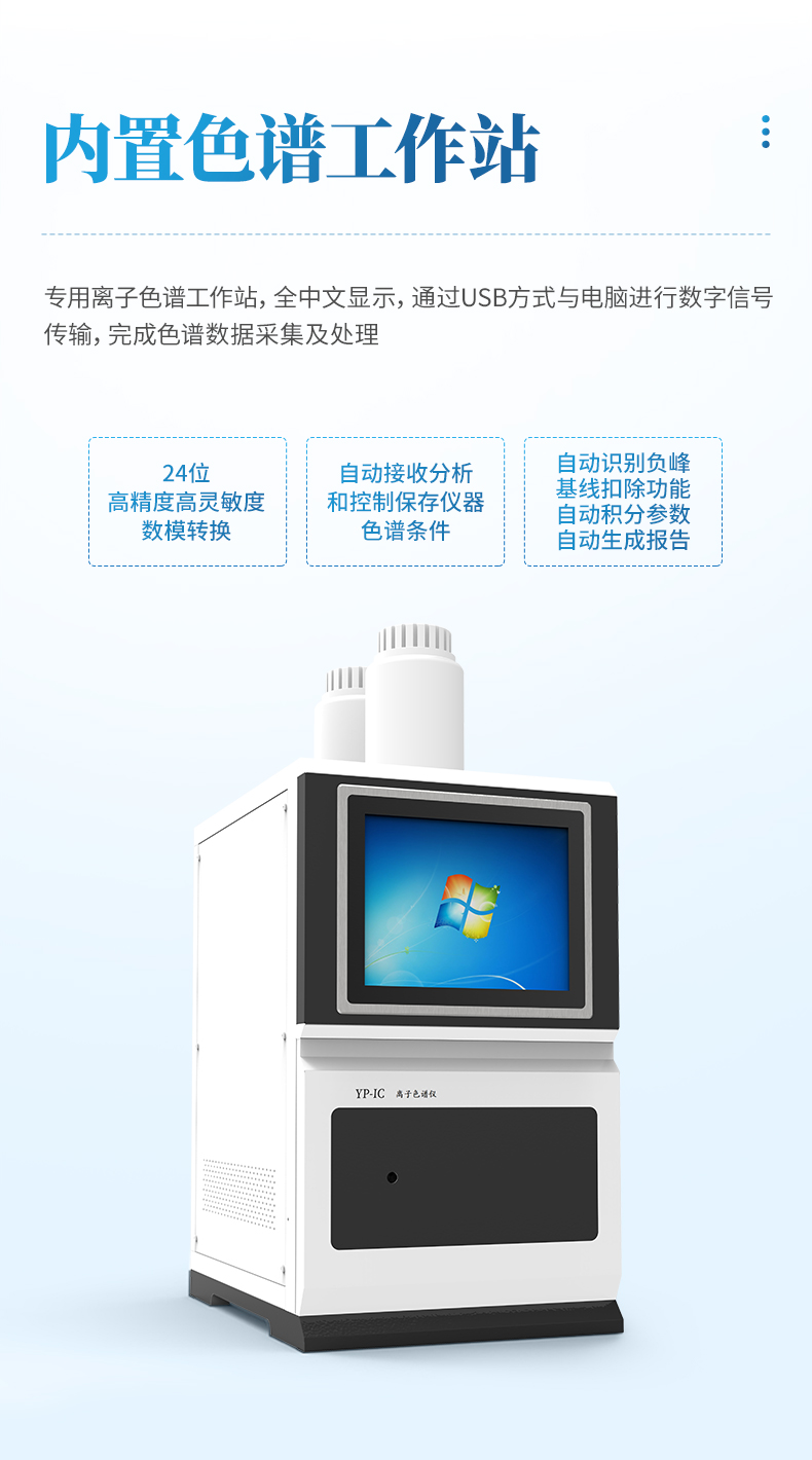 5.2專用離子色譜工作站,全中文顯示,通過USB方式與電腦進行數(shù)字信號傳輸,完成色譜數(shù)據(jù)采集及處理。