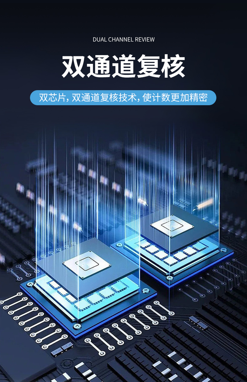 雙通道復核:雙芯片雙通道復核技術,使計數更加精密。