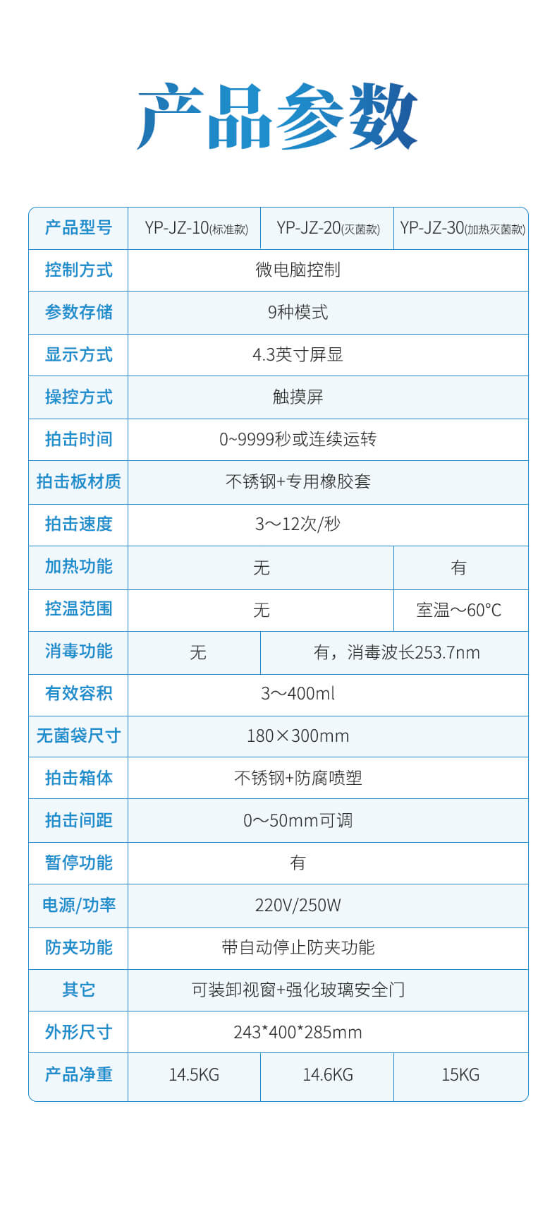 3. 均質時間、拍打速度可調。