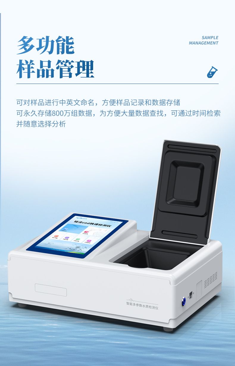 本儀器采用錳法測(cè)定水中的COD指標(biāo),又稱(chēng)CODMn或高錳酸鹽指數(shù),兼具智能數(shù)據(jù)分析功能,圖表、列表顯示數(shù)據(jù),分析一目了然;高清晰度彩色液晶觸摸顯示屏,Android智能操作系統(tǒng),中文顯示界面,中英文鍵盤(pán),人性化操作,使用更簡(jiǎn)單。