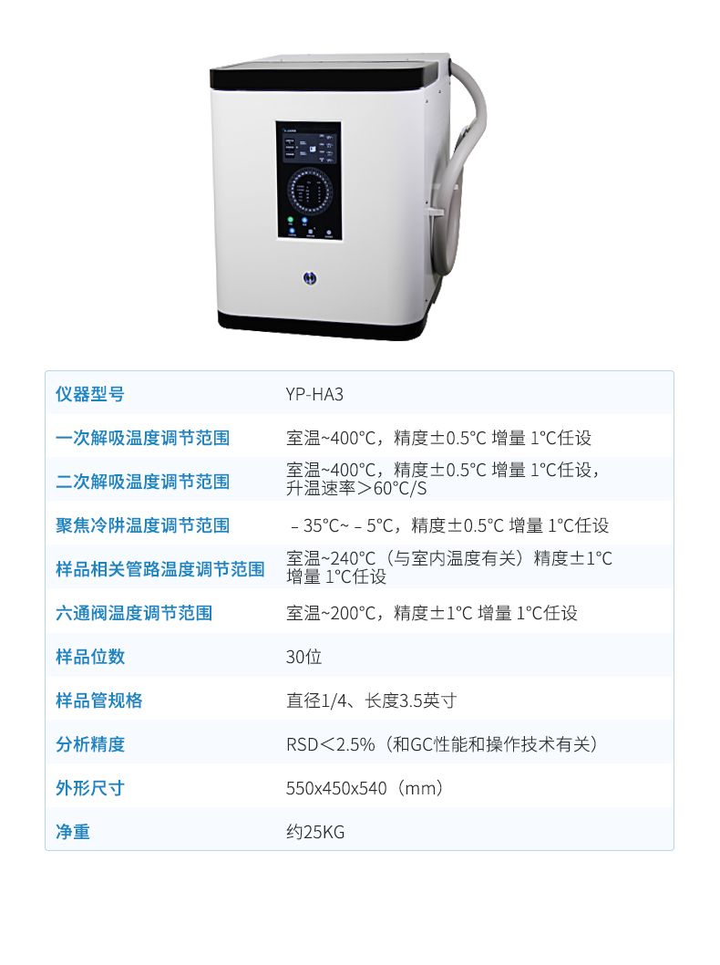 二次解吸溫度調節范圍: 室溫~400℃,精度±0.5℃ 增量 1℃任設,升溫速率>60℃/S