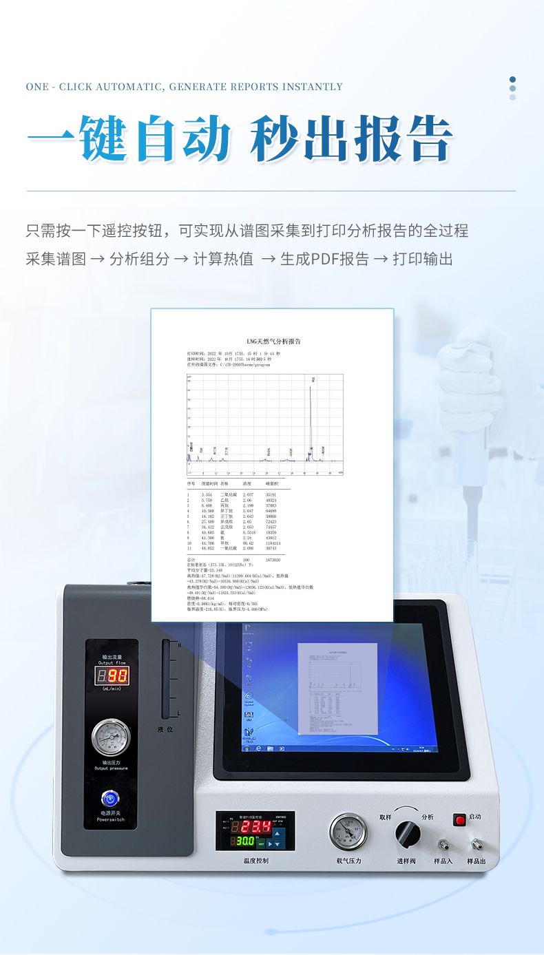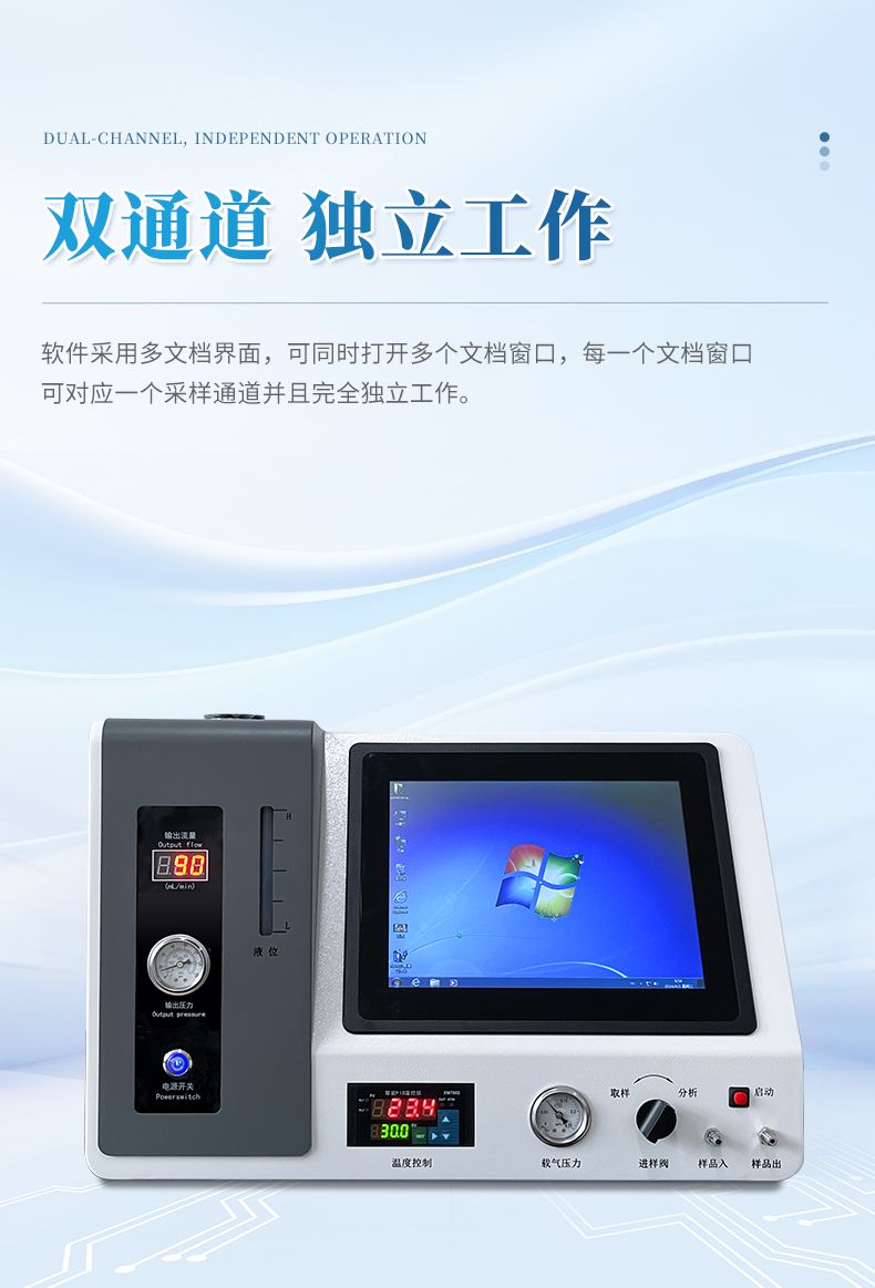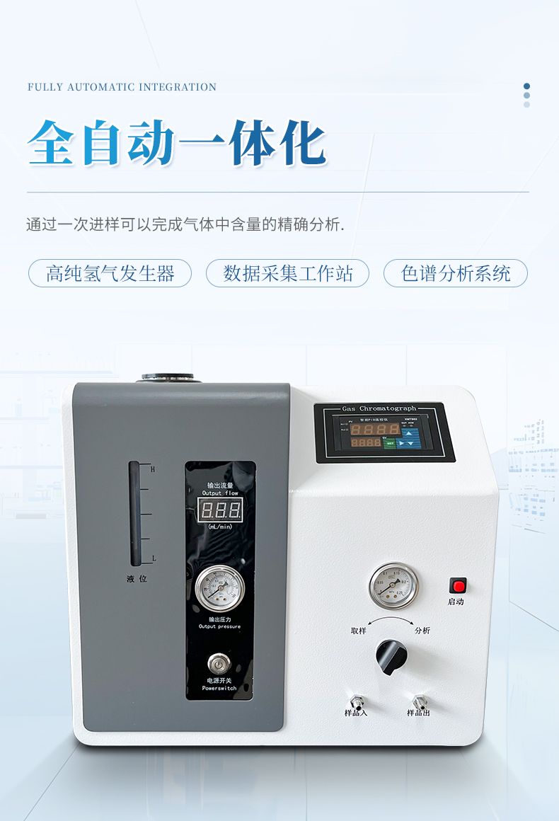1、將高純氫氣發生器,工業級電腦、分析儀、色譜工作站完美結合,檢測和顯示于一體,通過一次進樣可以完成氣體中含量的精確分析,可直接打印分析報告,只需一臺儀器就可完成整個分析,檢測過程更簡單化。