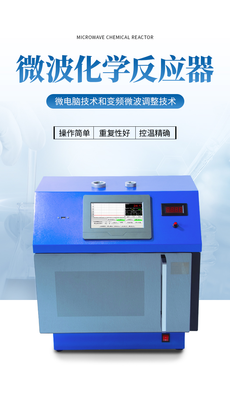 新型變頻微波化學反應器采用微電腦技術和變頻微波調整技術,實現了微波功率變頻調節,全系列產品均具備精確控溫和磁力攪拌功能,數字顯示溫度和磁力攪拌轉速,操作簡單,重復性好。對于需要摸索微波催化反應條件的實驗,特別是對于那些要求較小微波功率而又希望保持連續微波輻射的化學實驗,其科學性和實用性均得到理想發揮。