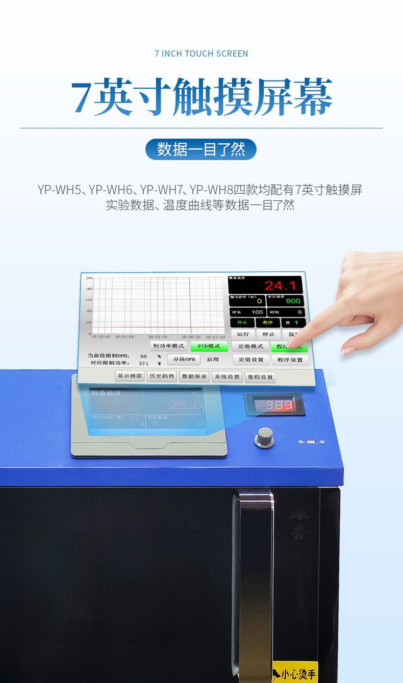 | 特 點(diǎn) | 7吋液晶觸摸屏;30段程序控溫,實(shí)驗(yàn)數(shù)據(jù)、溫度曲線等數(shù)據(jù)一目了然;恒溫和恒功率模式,定值和程序模式,可切換使用 |