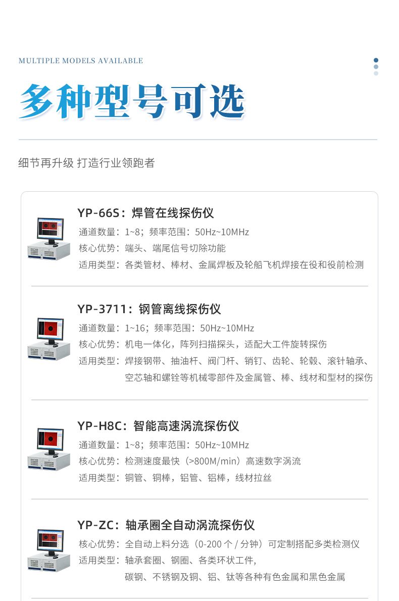 可配套渦流探傷儀、漏磁探傷儀、超聲探傷儀、磁記憶檢測儀、硬度儀等設備針對不同管徑不同要求搭配儀器。具體儀器參數詳見各儀器介紹。