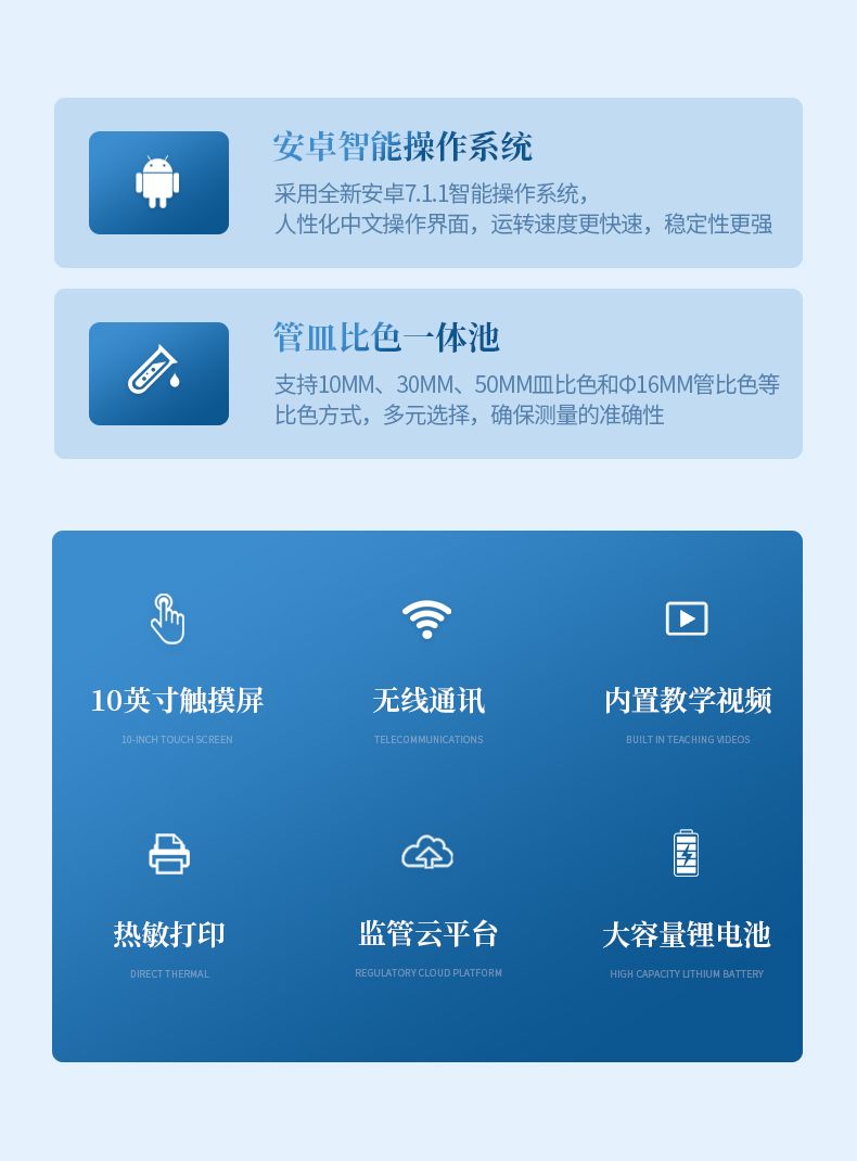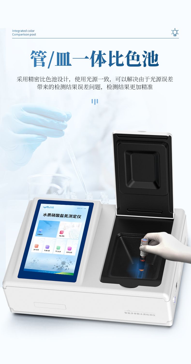 3、采用精密比色池設計,使用光源一致,可以解決由于光源誤差帶來的檢測結果誤差問題,檢測結果更加精準。