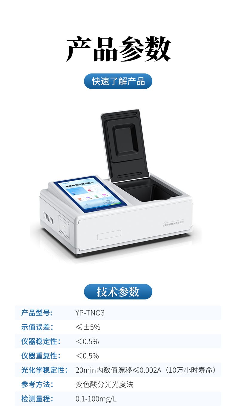 硝酸鹽氮檢測儀是參考方法《變色酸光度法》研發設計制造,主要檢測水質硝酸鹽氮濃度指標,兼具智能數據分析功能,圖表、列表顯示數據,分析一目了然;高清晰度彩色液晶觸摸顯示屏,Android智能操作系統,中文顯示界面,中英文鍵盤,人性化操作,使用更簡單。