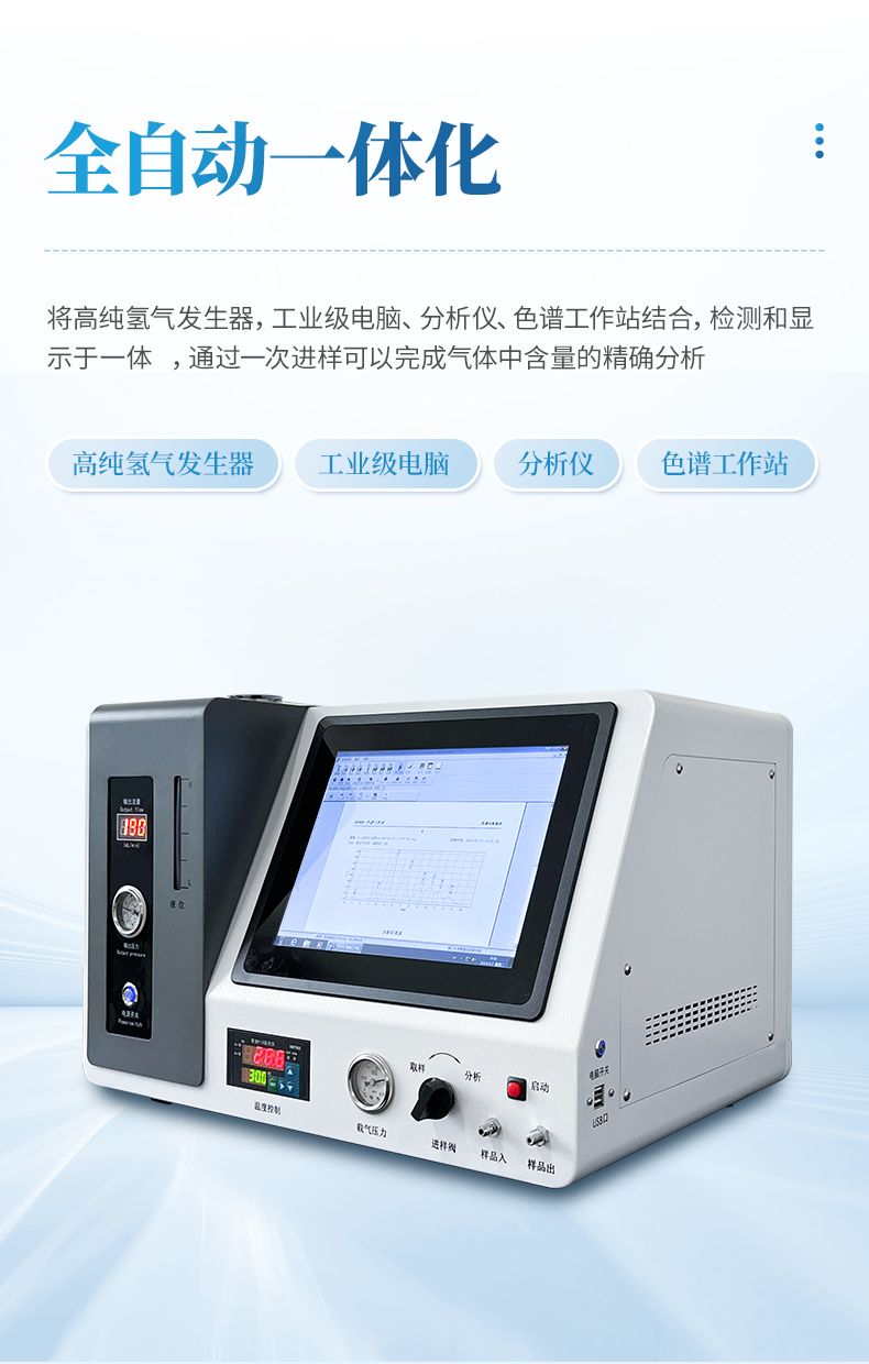 1、將高純氫氣發生器,分析儀完美結合,通過一次進樣可以完成氣體中含量的精確分析.