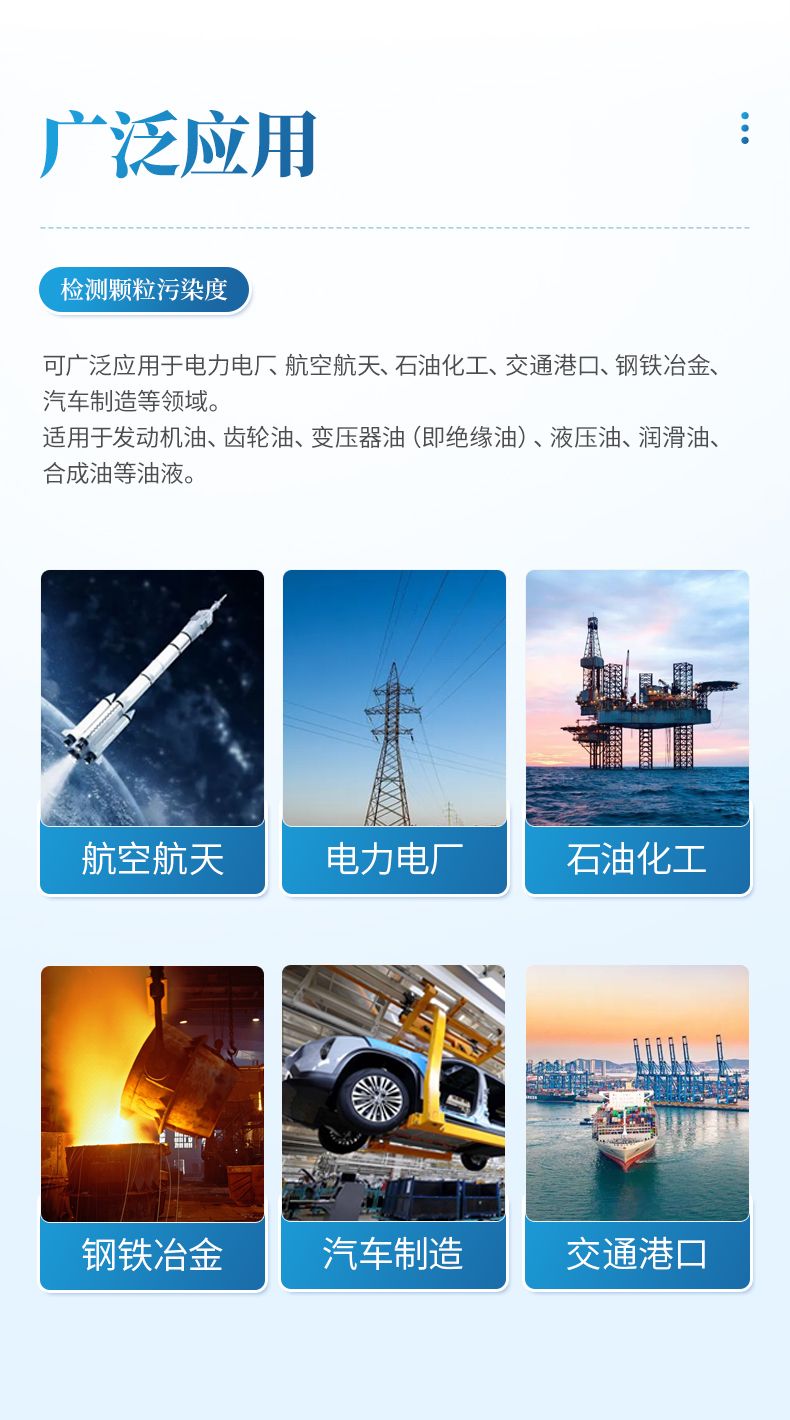適用于現(xiàn)場(chǎng)的在線檢測(cè),可實(shí)時(shí)監(jiān)測(cè)用油系統(tǒng)中的顆粒污染度