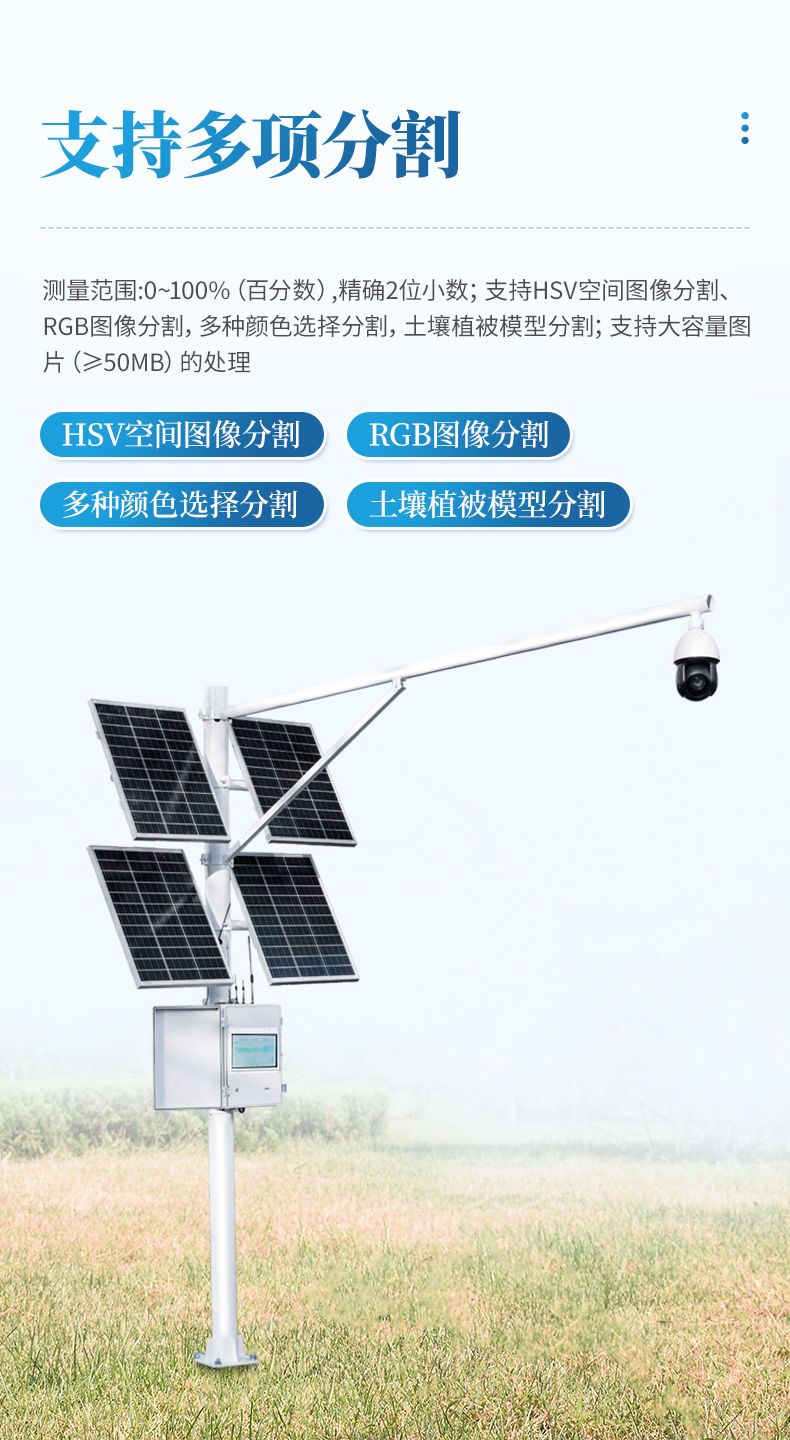 植被蓋度分析系統根據圖像識別原理來實現自動分析,用于植被覆蓋度和郁閉度的精確測量。儀器具有良好的防水性能,并帶有太陽能供電系統,可在戶外環境下長期自動定時采集分析,獲取植被長期生長變化情況。