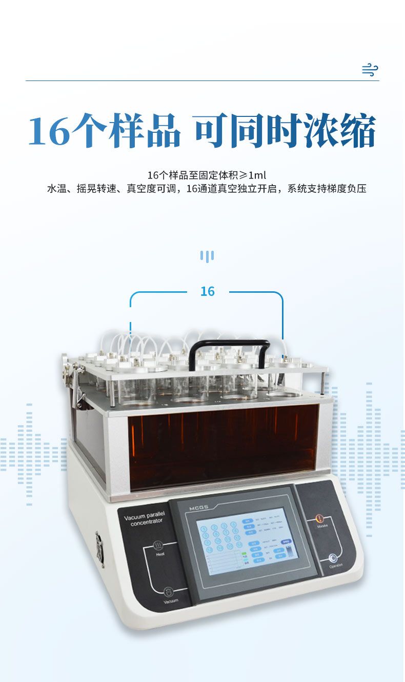 真空平行濃縮儀可對多個樣品進行單獨或者集中密閉蒸發/濃縮,快速有效的回收溶劑,降低了多個樣品的總蒸發時間,增加了處理量,節省了操作實驗時間和實驗資源,平行蒸發儀安裝操作簡單、使用靈活。由于處理條件高度一致,因此平行性也更好。平行蒸發儀主要用于化工、醫藥、生物、環保、檢測或其它行業中樣品的蒸發濃縮。